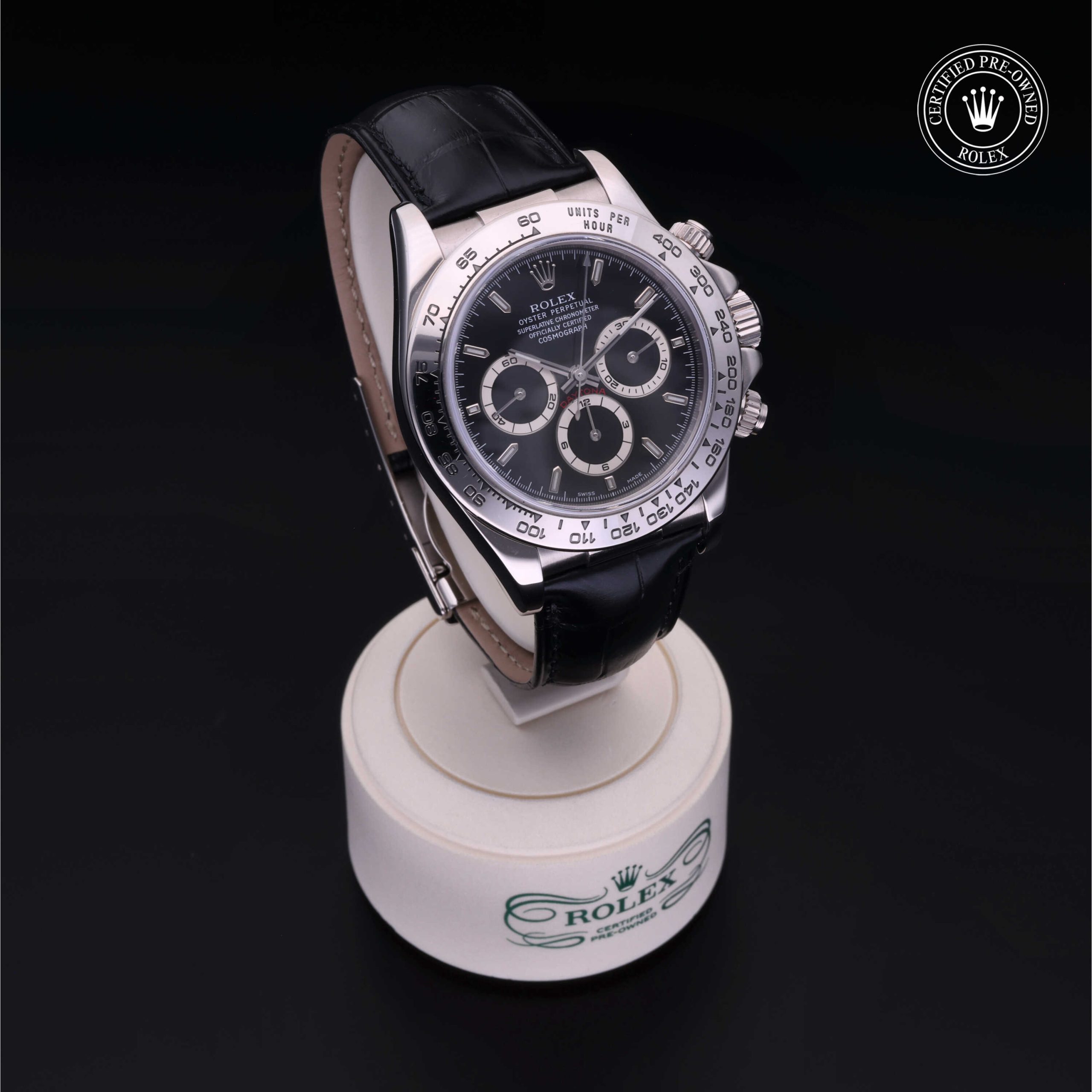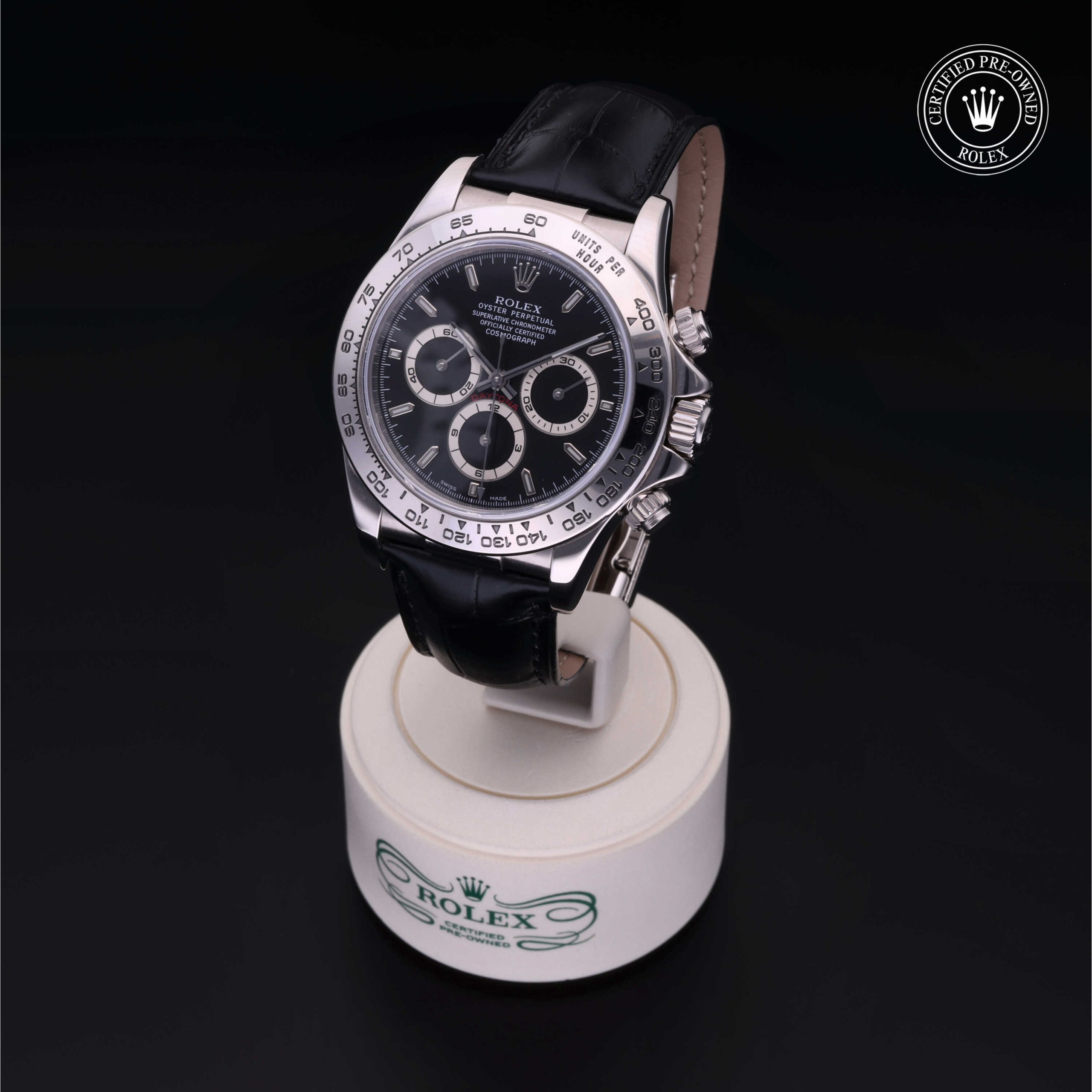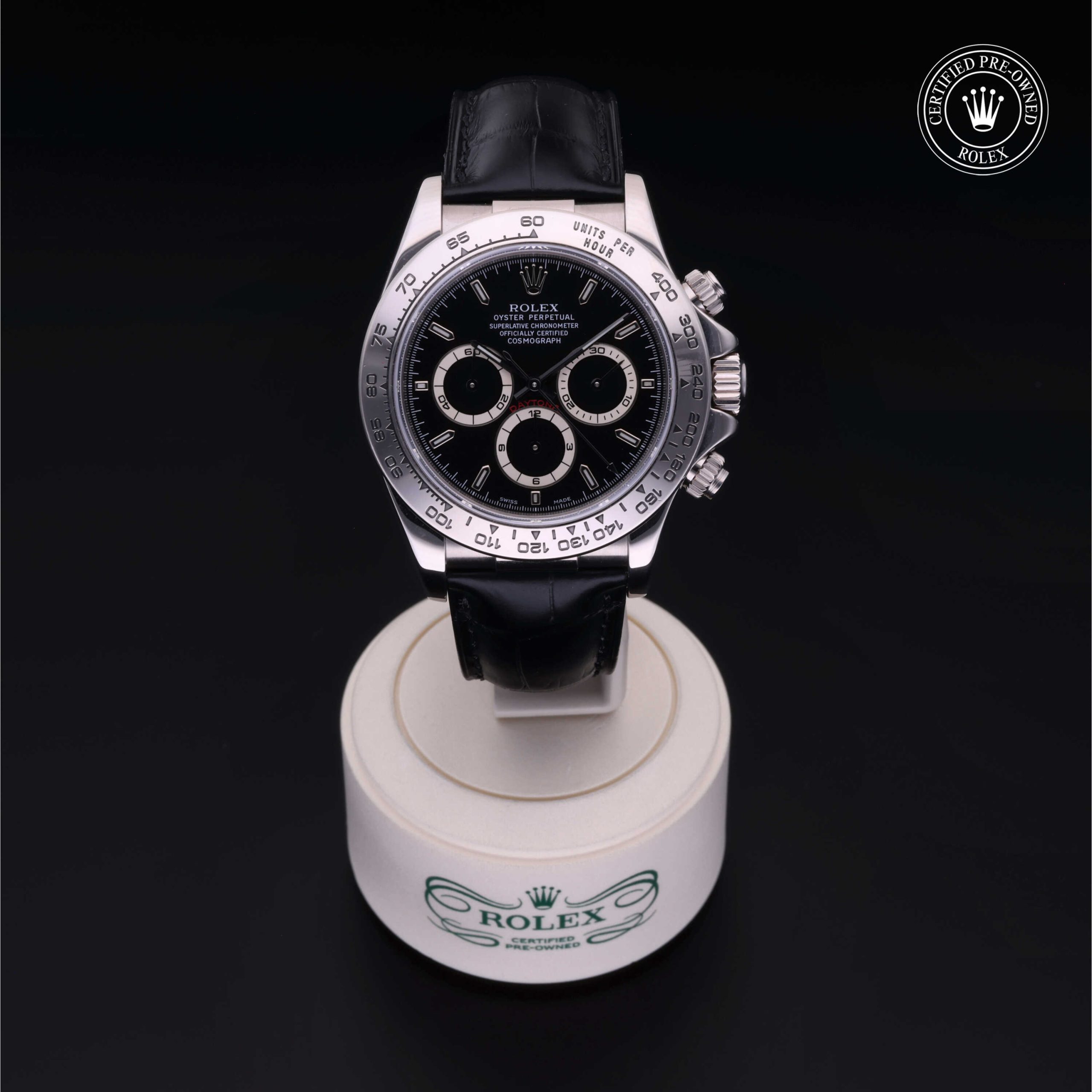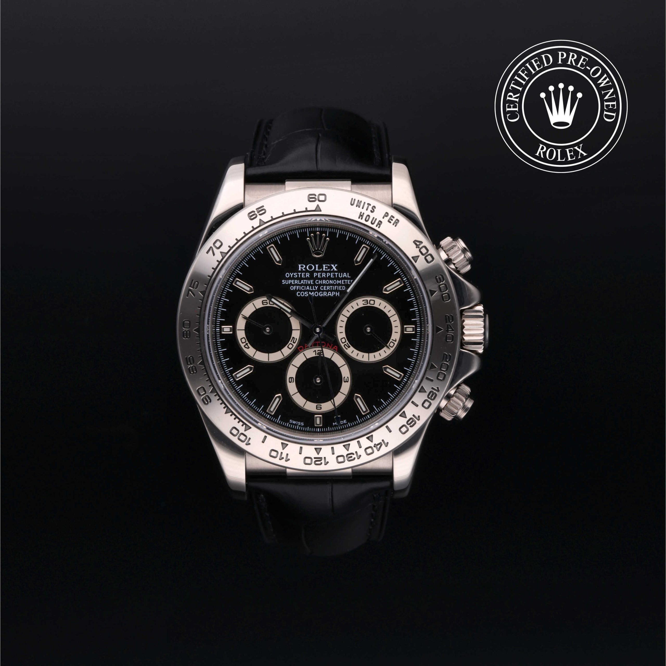 Since its launch in 1963, the Oyster Perpetual Cosmograph Daytona has been the benchmark for those with a passion for driving and speed. Today, this iconic chronograph is legendary for its reliability thanks to its high-performance mechanical movement entirely developed and manufactured by Rolex. Using the tachymetric scale on the bezel, the wearer can measure time intervals or determine average speeds.