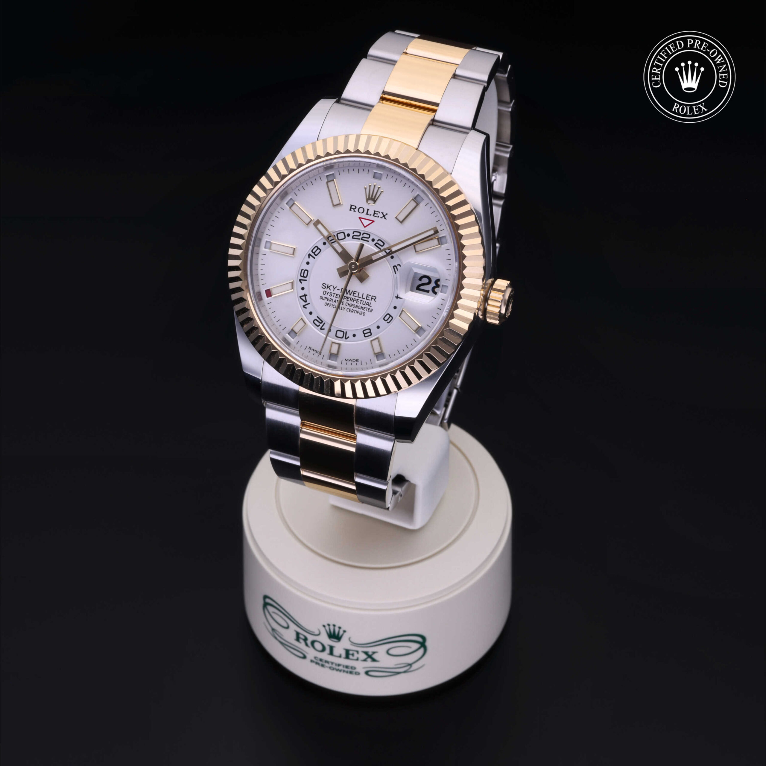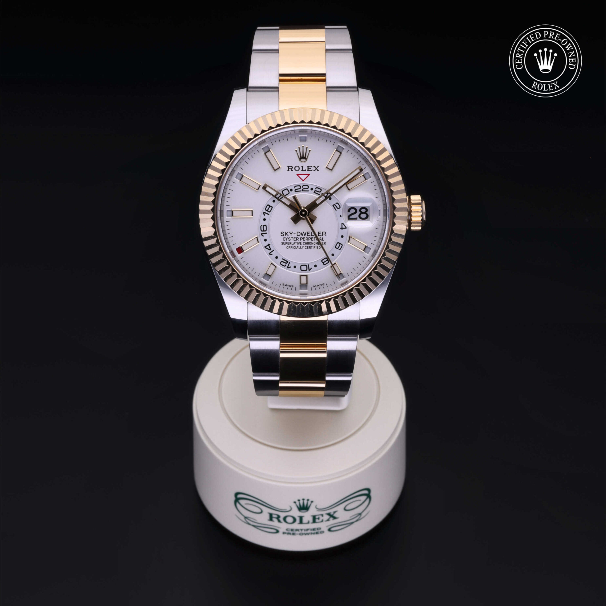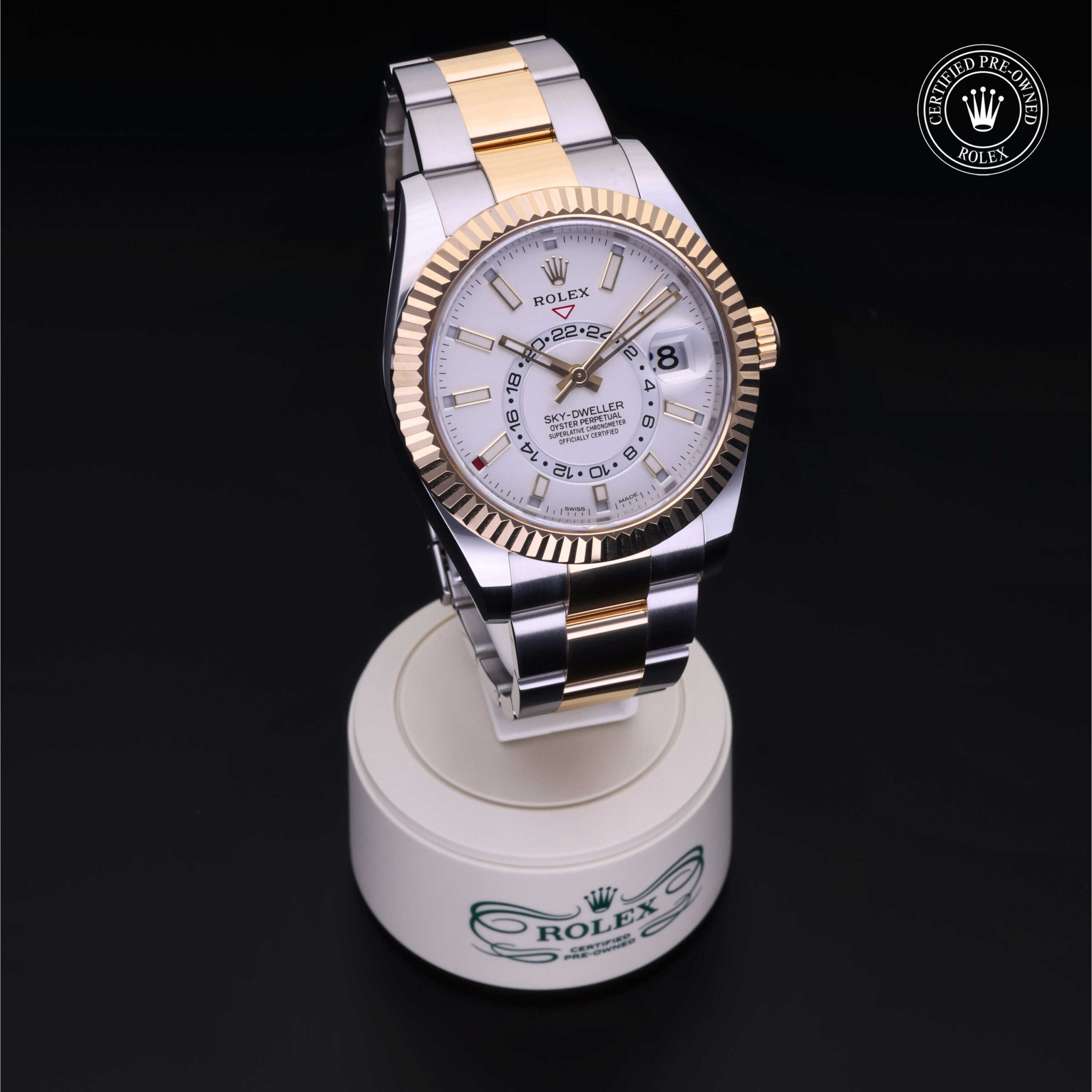 An elegant watch for world travelers, the Oyster Perpetual Sky-Dweller features a dual time zone and an annual calendar. Known as Saros, the calendar is driven by a patented mechanism called the Ring Command, and displays the month by means of 12 apertures around the circumference of the dial – the current month is shown in a contrasting colour. A compelling blend of technical sophistication and ease of use, the Sky-Dweller is the result of Rolex’s unique culture of innovation.